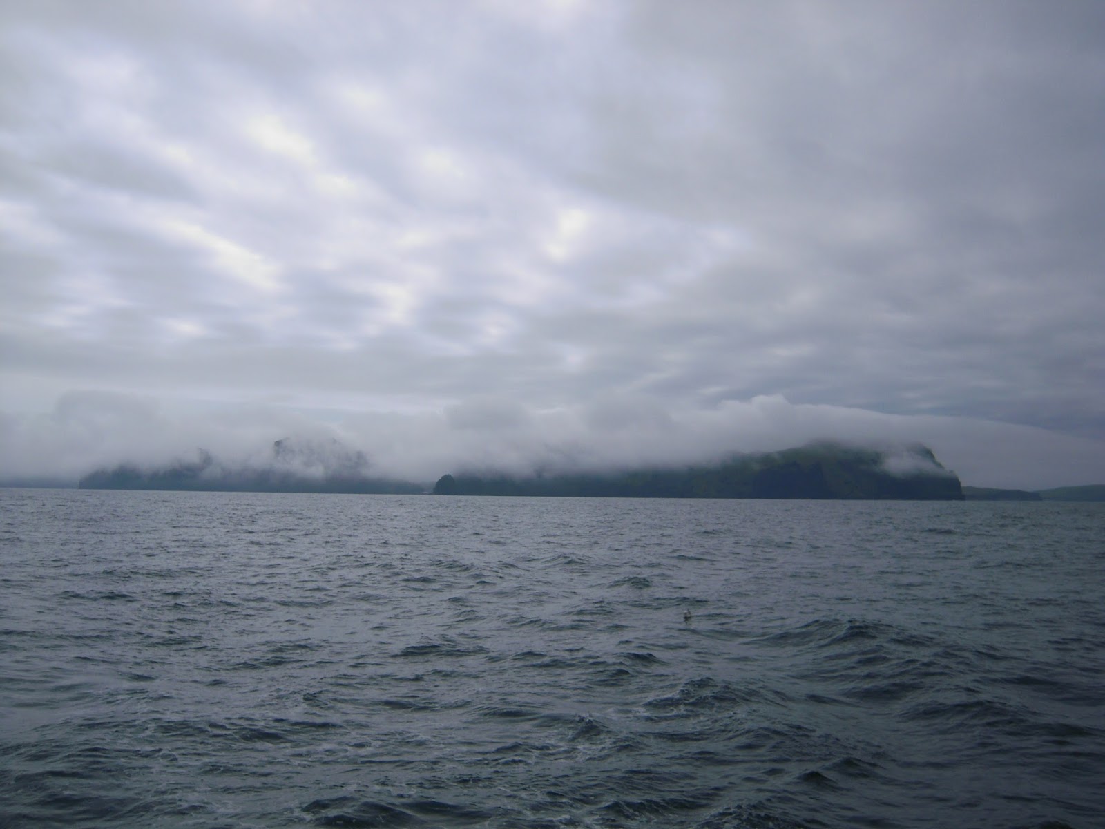 Le vent a forci à 18-22 nœuds tournant au Nord-Nord-Est conformément à la prévision météo. Vent de travers, le bateau marche bien à 8nds. Nous avons parcouru 16O milles en 24 heures. Le brouillard est toujours très dense. Les températures de l’eau et de l’air sont de 8°c, l’humidité nous transperce la peau et il est peu agréable de rester sur le pont.